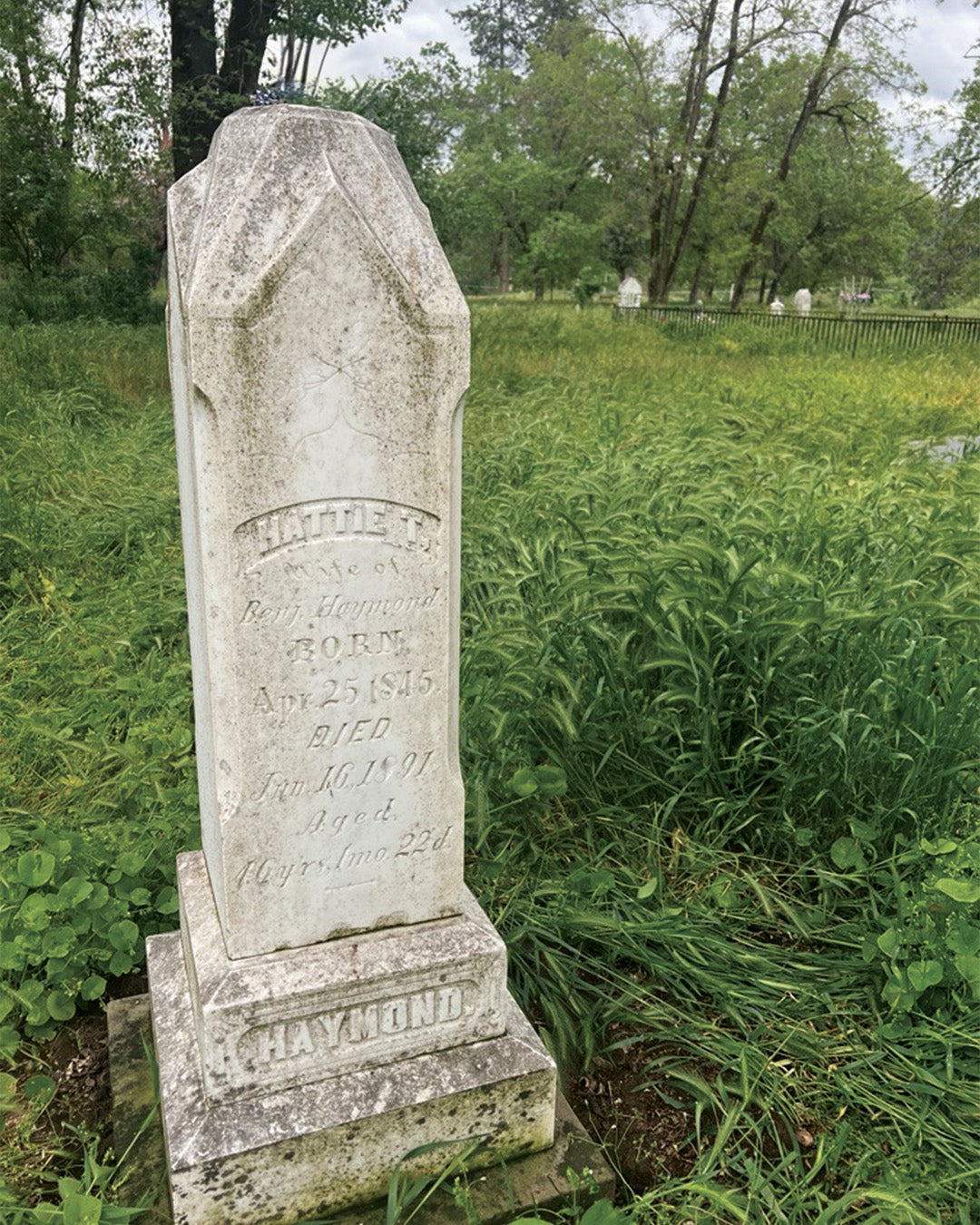 Benjamin Haymond (b. 1829 - d. 1906), a thriving business man and later-elected county commissioner, courts and marries Hattie Beach (b. 1845 - d. 1891), step-daughter of his business partner in 1868. It is reported that Benjamin and Hattie never had children before her death in 1891. But that's where the mystery begins...