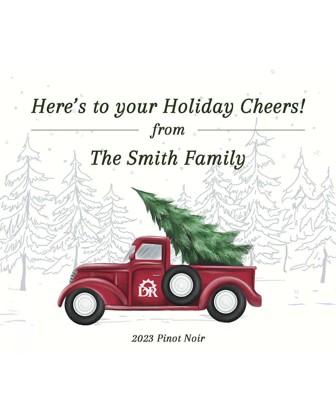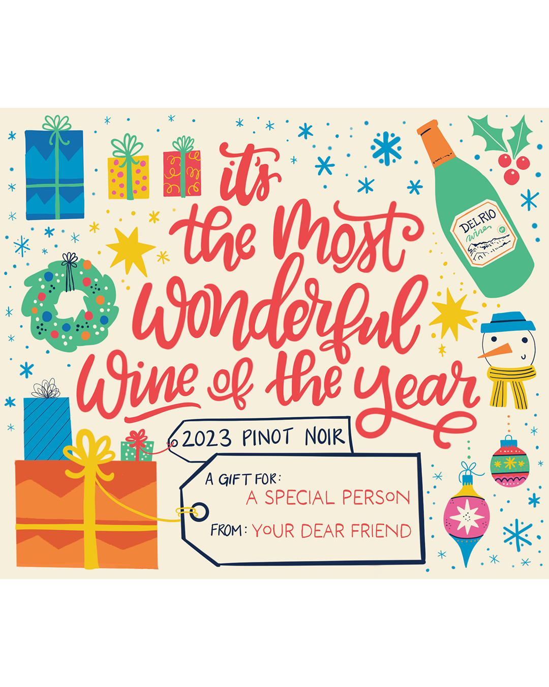 Dashing through the snow with a bottle of 2023 Pinot! This label is sure to bring on the Holiday Cheers this season.