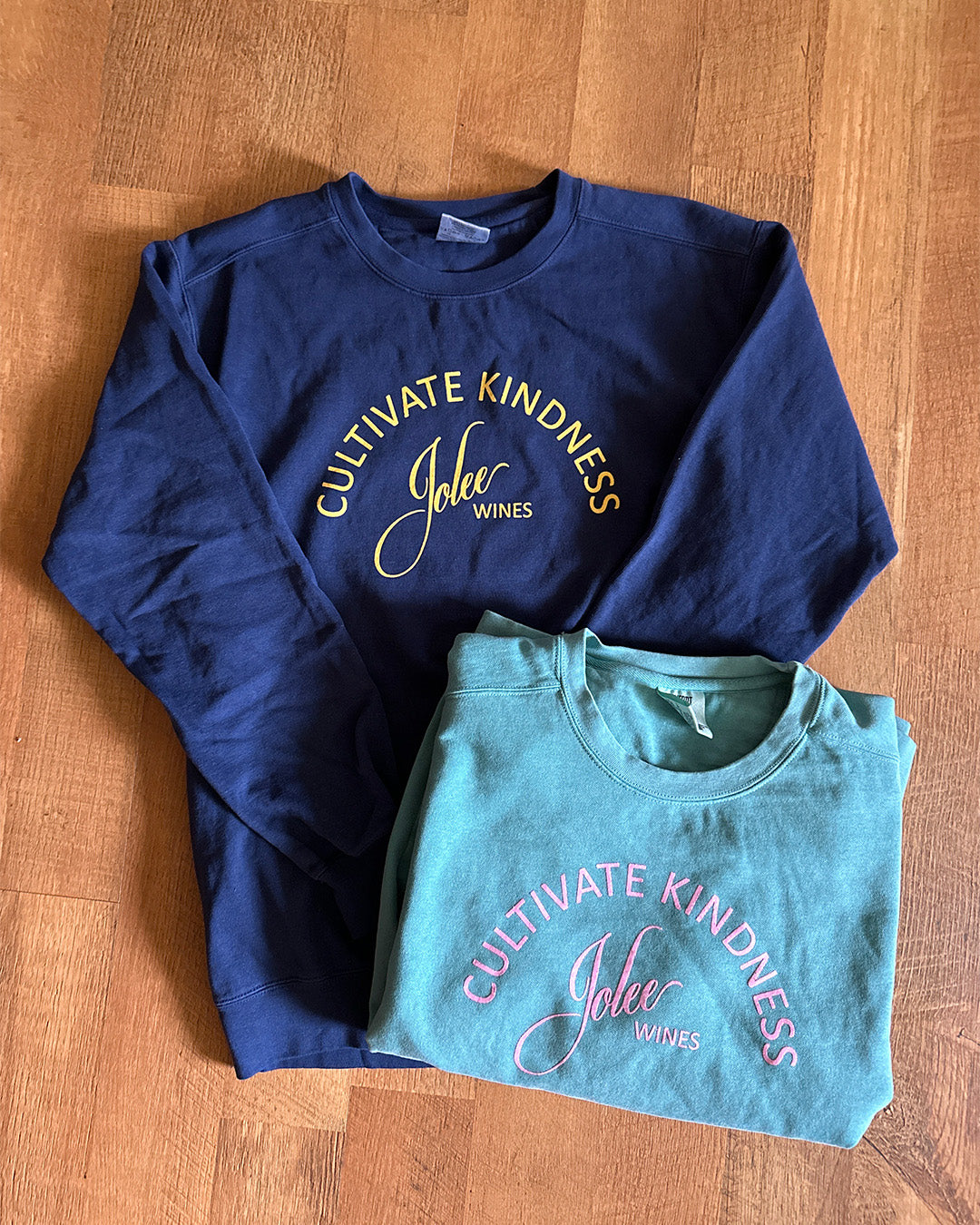 Sport your love for Jolee wines with a Cultivate Kindness sweatshirt.